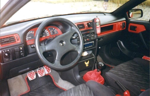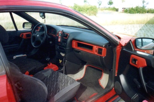 Dezent in Rot und schwarz gehalten mit einen Tupfer Gelb mein Calibra von innen.